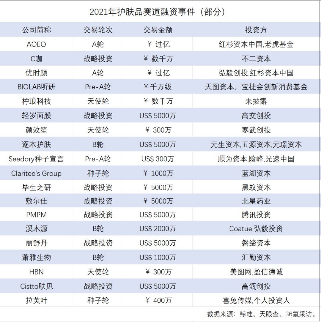 據(jù)不完全統(tǒng)計(jì),僅2021年上半年,國(guó)內(nèi)一級(jí)市場(chǎng)護(hù)膚品賽道公開(kāi)融資就有約20起: