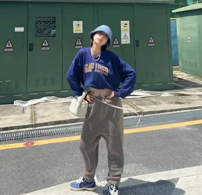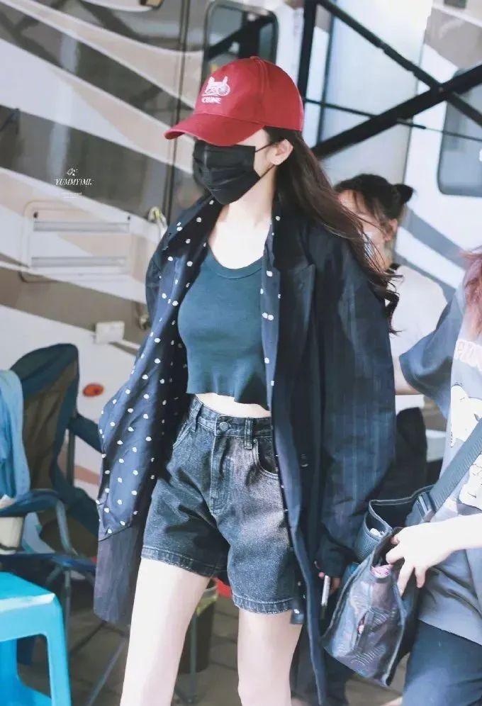 如果穿的是藍(lán)色襯衫,還可以和楊冪一樣用寶藍(lán)色棒球帽進(jìn)行搭配。