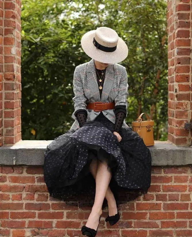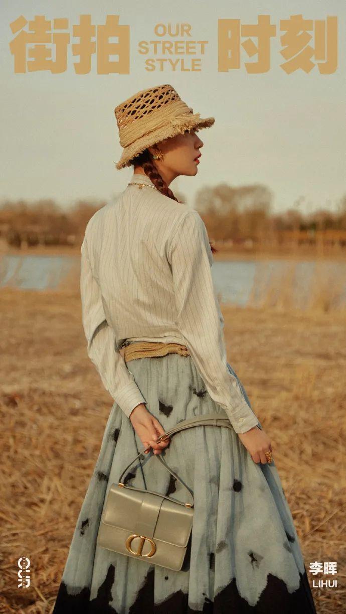 喜歡有設(shè)計(jì)感的帽檐不妨看看暉姐的這套look,襯衫、印花長(zhǎng)裙,以及一頂編織寬檐帽,文藝范拉滿~