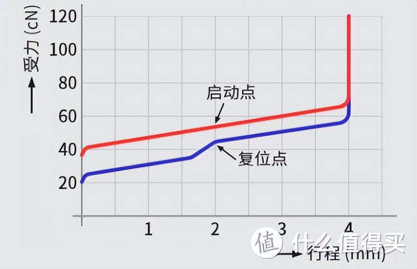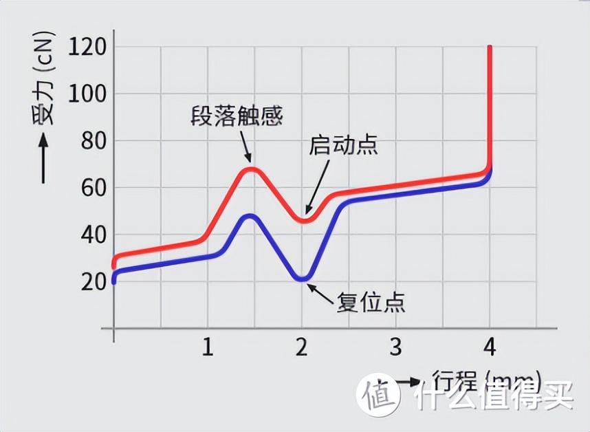 線(xiàn)性軸就是直上直下,中間沒(méi)有任何阻礙。段落軸在按壓過(guò)程中彈片會(huì)有一個(gè)突出的部分,按下之后會(huì)有咔嚓一聲,很多人都喜歡青軸的這種明確的確認(rèn)感。輕微段落軸以cherry茶軸為代表,突出部分比青軸小,按下過(guò)程中會(huì)有一個(gè)小小的阻礙,手感位于紅軸和青軸之間。提前段落軸是按下開(kāi)始有段落,過(guò)了段落猶如突破了一層阻礙,就可以一路到底了。