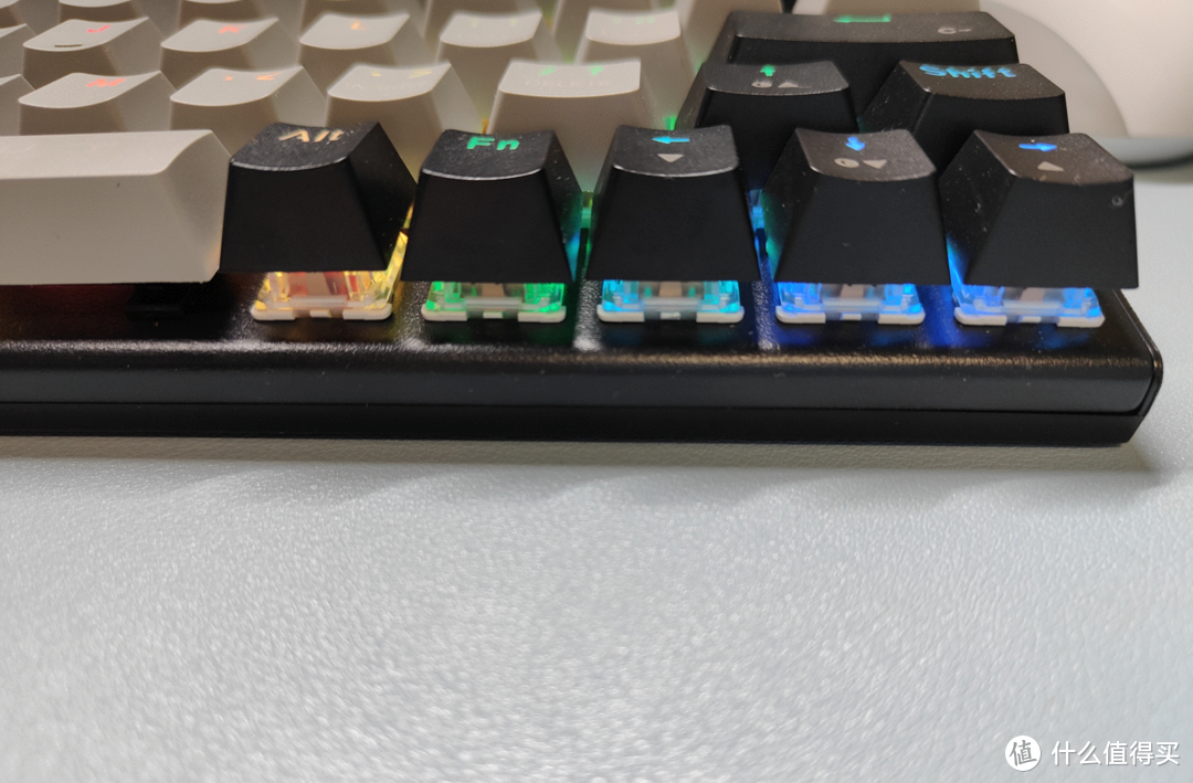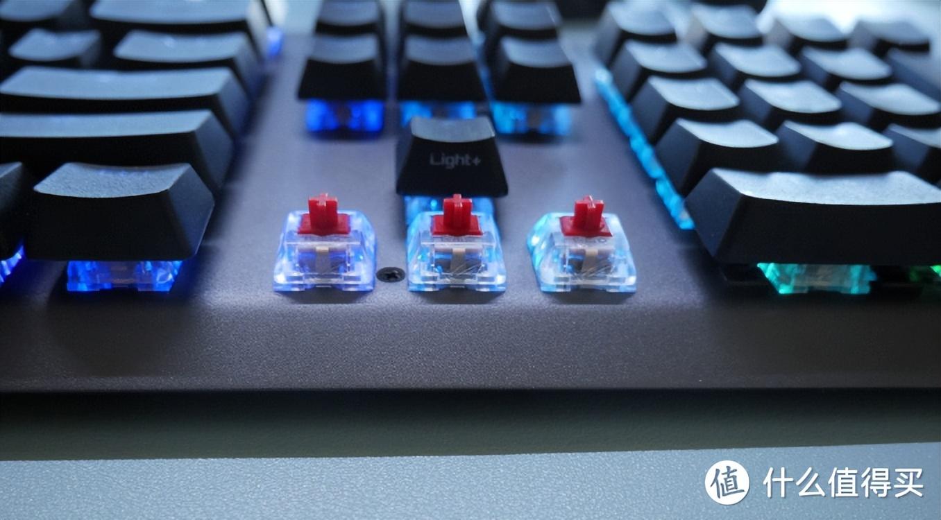 這樣的鍵盤(pán)相對(duì)比較容易清理,RGB燈也比較帥氣,燈光可以從透明軸蓋的側(cè)面露出來(lái),一般也不會(huì)有太的空腔音。
