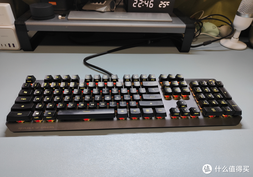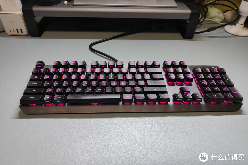 這款鍵盤(pán)的今年618的價(jià)格賣(mài)到599,搭配優(yōu)惠券之后價(jià)格會(huì)更低。目前可以體驗(yàn)RX軸的便宜的鍵盤(pán),尤其是前面介紹過(guò)的RX紅軸可以說(shuō)是目前的線(xiàn)性軸,又穩(wěn)又彈。噴砂工藝的鋁合金面板,透光率極高的背光支持神光同步,再加上ROG品牌加持,性?xún)r(jià)比超高。當(dāng)然了,要是想鍵帽更耐磨可以加錢(qián)買(mǎi)PBT版。
