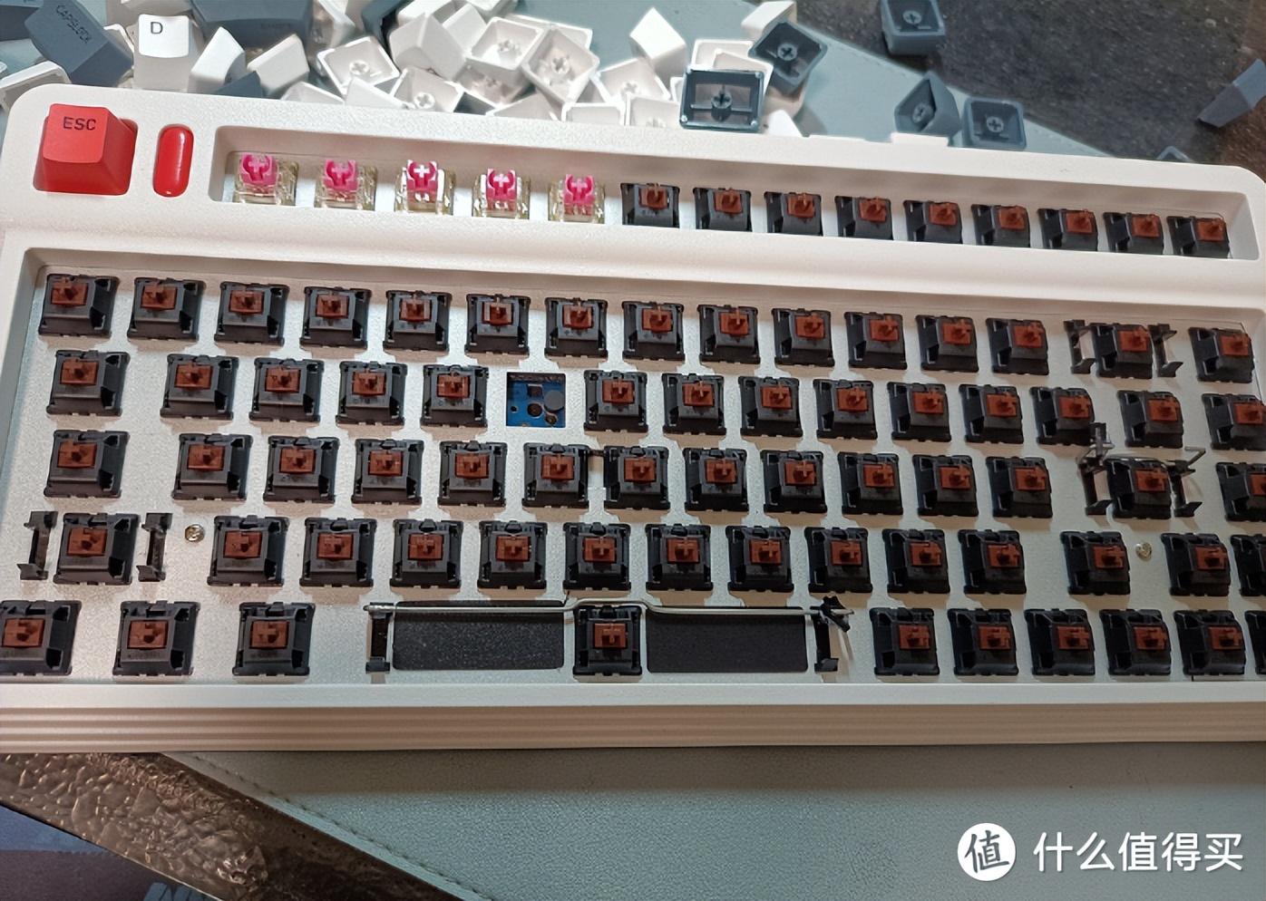 RK98這套應(yīng)該是新模具,做工比之前的產(chǎn)品有了一定的提升,至少是滿(mǎn)足400元價(jià)位應(yīng)有的水準(zhǔn)的。大的亮點(diǎn)還是搭載了TTC定制的七彩虹軸,順滑度接近金粉、快銀,算是性?xún)r(jià)比極高的產(chǎn)品。