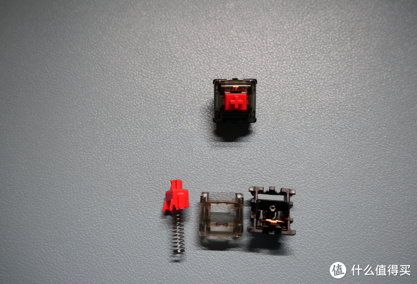 凱華BOX紅軸:市面上性?xún)r(jià)比高的軸體之一,散買(mǎi)單價(jià)也才1元左右1顆,45g觸發(fā)壓力和cherry紅相同,但是順滑度好很多。