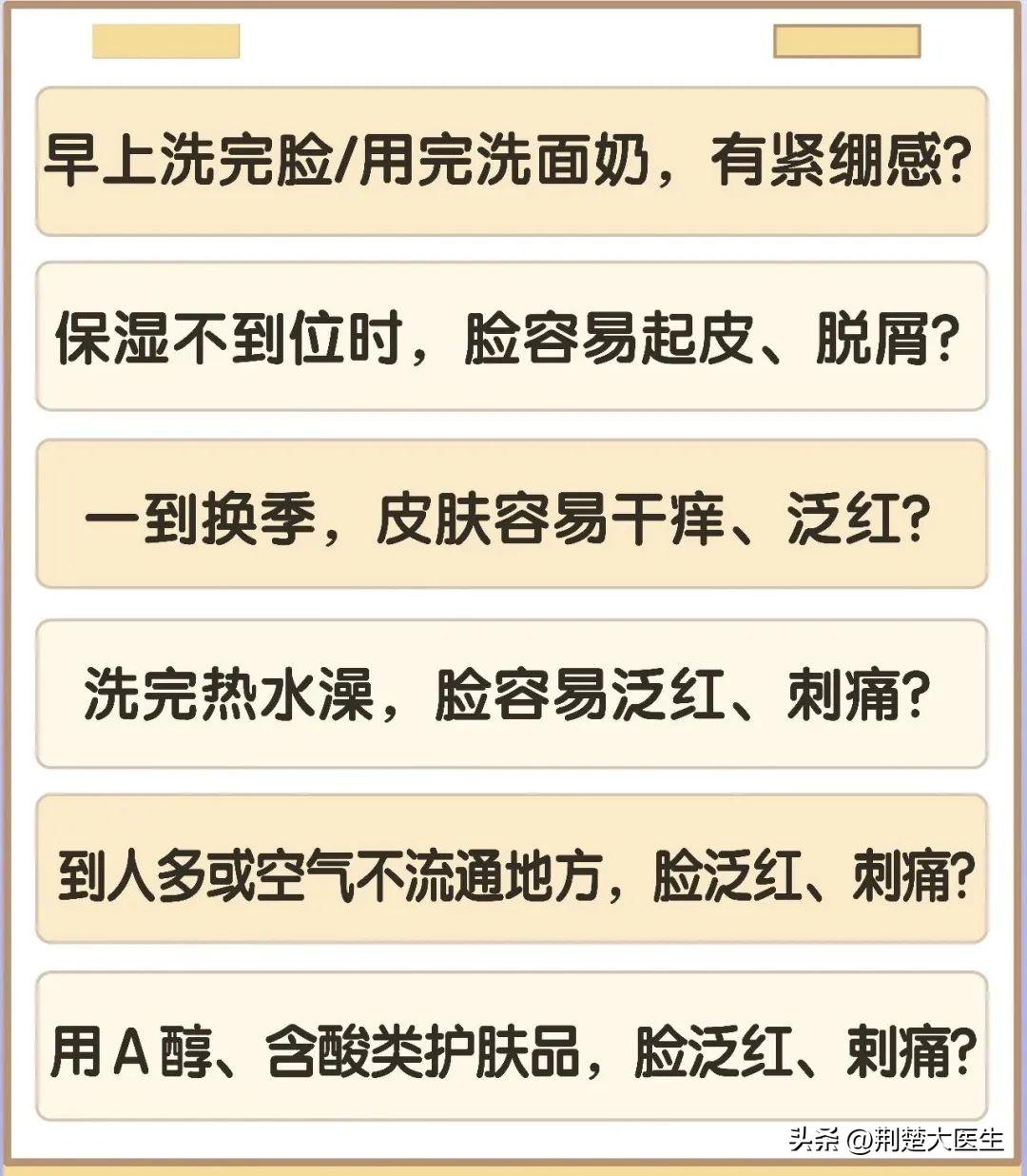 「干、癢、紅、熱」是皮膚敏感的典型表現(xiàn),當(dāng)出現(xiàn)干癢、燒灼、緊繃、起皮、刺痛感時(shí),說(shuō)明皮膚正在遭受刺激。如果出現(xiàn)紅斑、脫皮、滲液等癥狀,就意味著皮膚可能有點(diǎn)撐不住了。