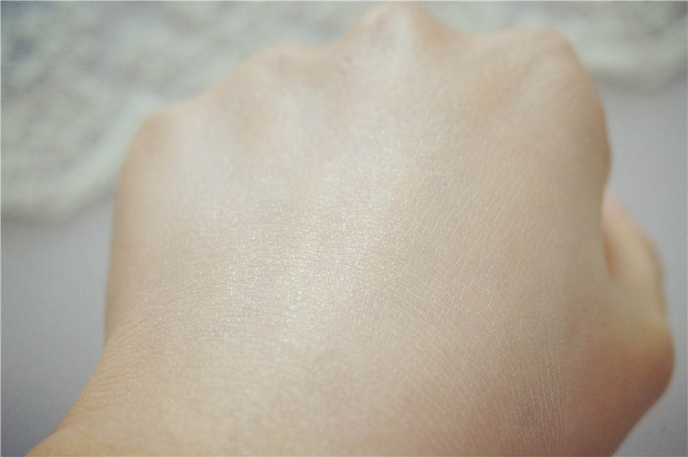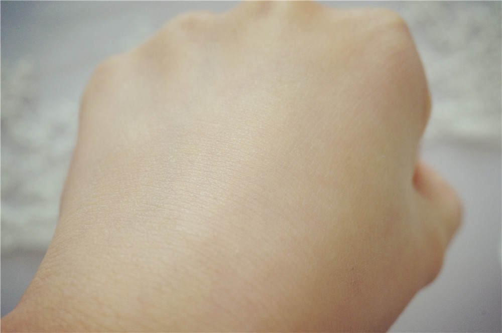 上圖即為京潤珍珠防曬露推開后的延展果。可以看出,這款防曬露輕輕一推即可迅速展開,而且能均勻的覆蓋在手背上。