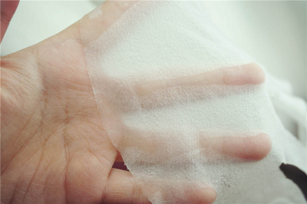 評(píng)測(cè)方法:將面膜展開,用手指撐開,觀察膜布的厚薄度和透氣性,手指稍微用力向兩側(cè)拉伸,觀察并感受膜布的韌性。