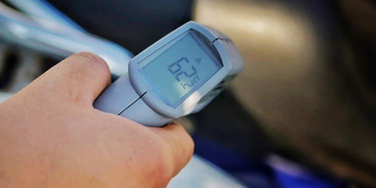 除了帽子是一件“硬家伙”,朱益超身上的其他設備也“不簡單”,件件都是“高溫煎熬款”——長袖長褲全套騎行服、厚得如雪地靴的騎行靴、夾棉的手套,而此時高架地面的溫度已經(jīng)超過了60攝氏度。
