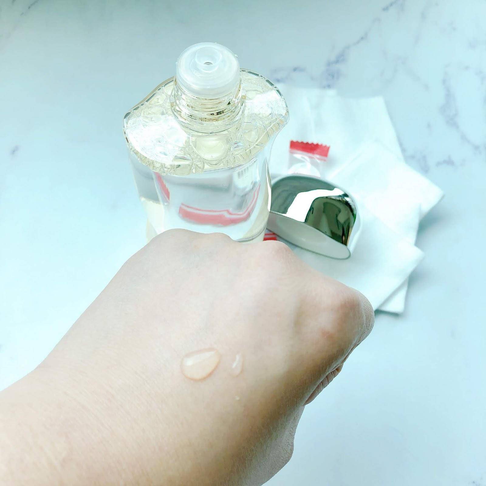 透明水狀質(zhì)地,流動(dòng)性強(qiáng),無黏膩感,無特殊香味,推開之后肌膚有強(qiáng)烈的水潤(rùn)感,值得一提的是,這款水獨(dú)有的“保濕水分滲透分子”技術(shù),能在角質(zhì)層形成人工水潤(rùn)水層,不易流逝,讓肌膚的滋潤(rùn)感更加持久。