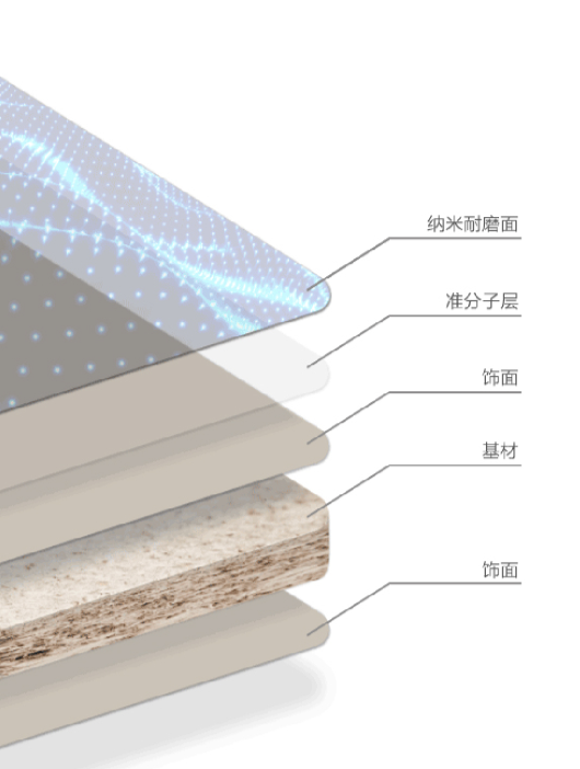 慕宸慕勒準(zhǔn)分子膚感板,是在高純度氮氣密閉空間中,用準(zhǔn)分子光束照射,使得板材表面發(fā)生了納米級物理變化,不僅飾面表部呈現(xiàn)細(xì)膩光滑的狀態(tài),同時還具有耐污漬、耐高溫、抗劃痕等優(yōu)勢。