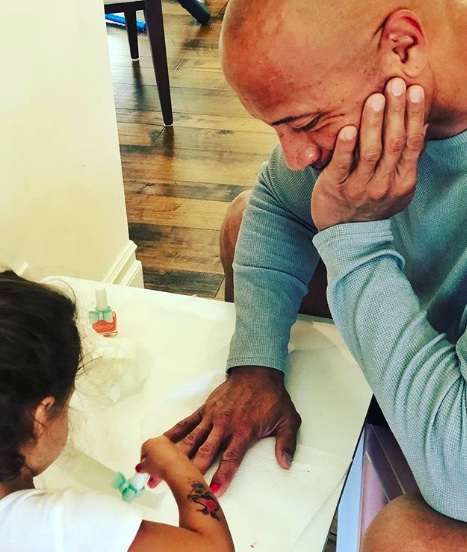 就好像好萊塢具代表性的硬漢——巨石強(qiáng)森,能夠乖乖的伸出手指讓女兒給他涂上紅色的指甲油。