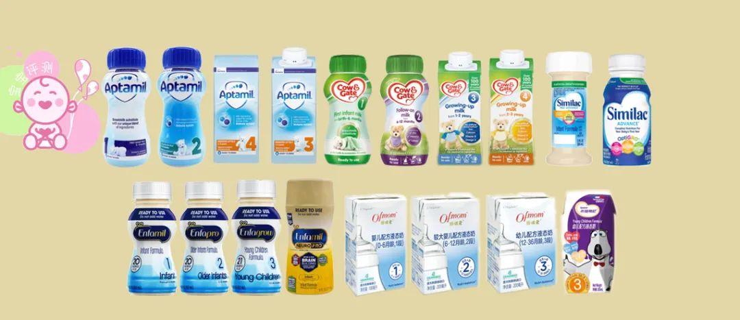18款配方液態(tài)奶評測根據(jù)電商平臺銷量、品牌知名度等因素,笨爸爸選擇了18款嬰幼兒配方液態(tài)奶,包括:愛他美、牛欄、美贊臣、雅培、媽咪愛、圣元。