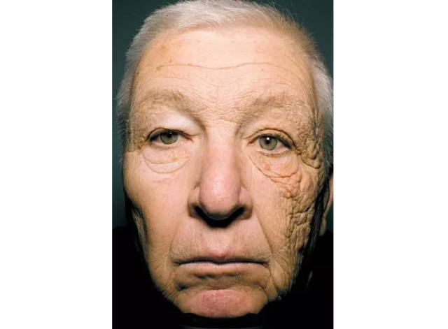 圖中的這個(gè)老年男性是美國(guó)一名從業(yè)超過(guò)30年卡車司機(jī),拍這張照片的時(shí)候69歲,但是老人的左臉看起來(lái)卻像是80歲,整整比右臉看上去老了將近20歲。嚴(yán)重的情況使得老人不得不就醫(yī)。