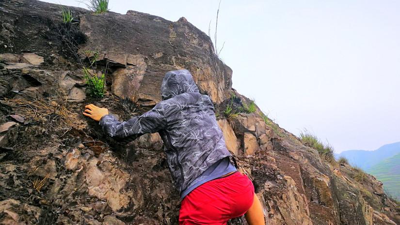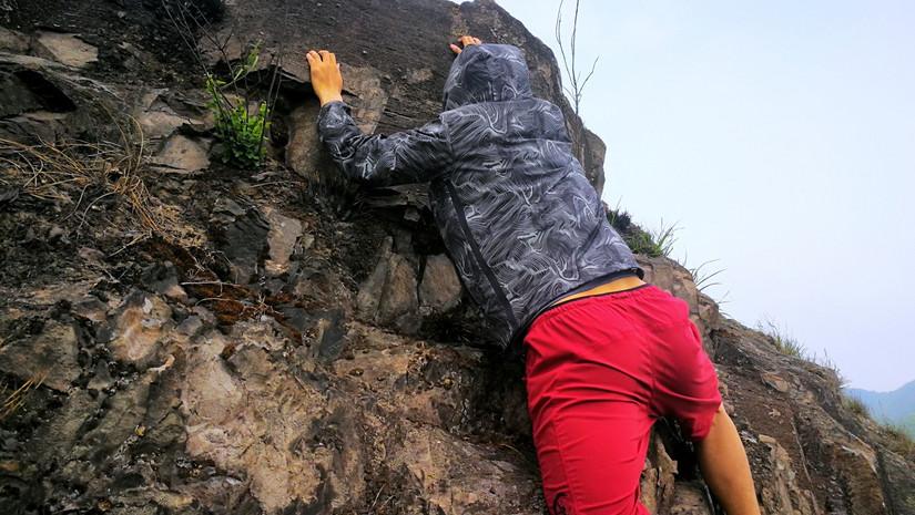 如上圖,在徒步路途中遇到需要攀爬的路段,諾詩蘭的EXOTHERM?動(dòng)態(tài)彈力科技就發(fā)揮出他的作用了,整個(gè)攀爬過程舒暢,不會(huì)覺得有束縛感。