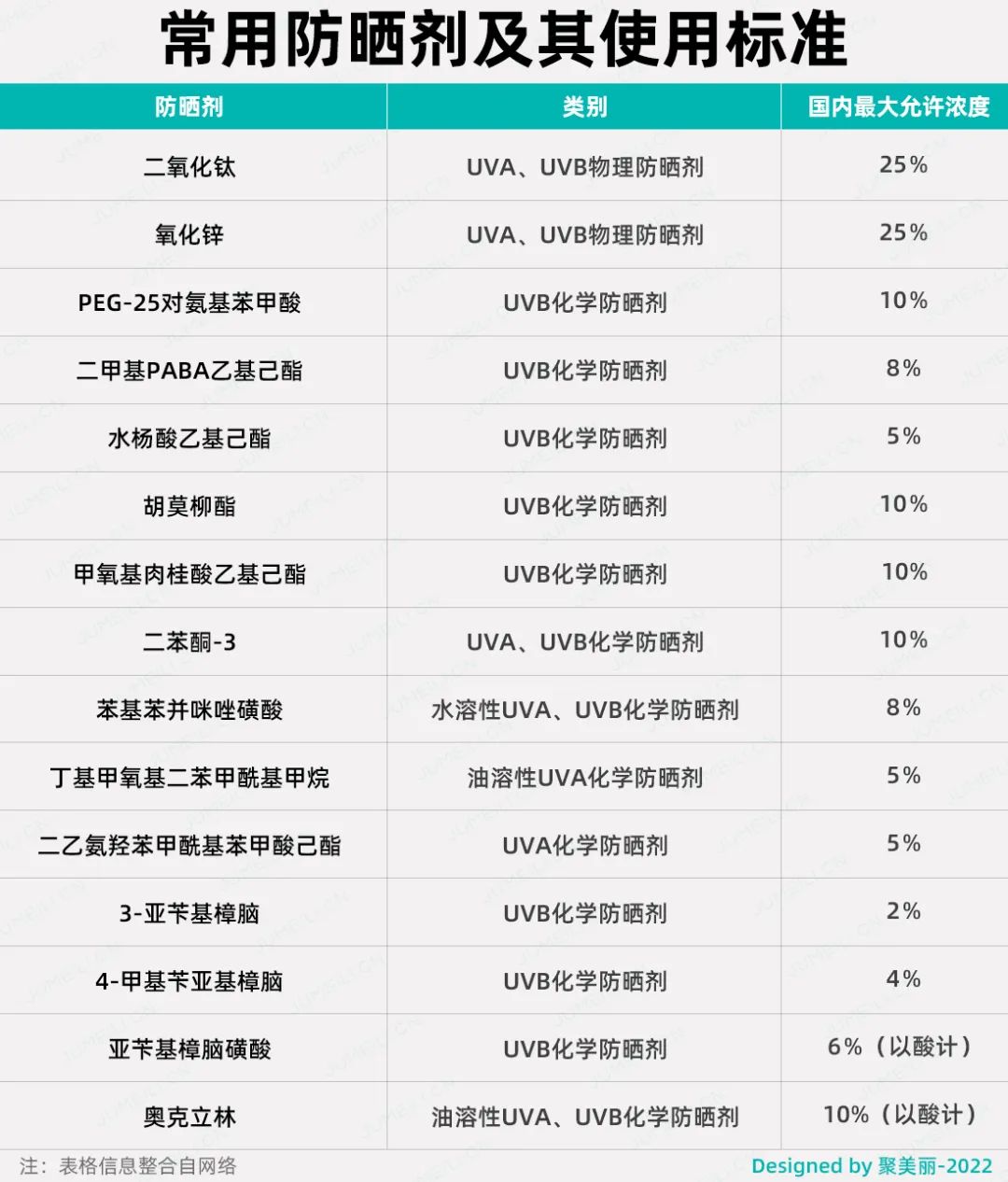 為了保障防曬產(chǎn)品的性,《化妝品技術(shù)規(guī)范》對允許使用的28種防曬劑均進(jìn)行了限值和使用規(guī)定。除了物理防曬劑成分二氧化鈦和氧化鋅外,其余防曬劑的大濃度限值多數(shù)在2%-10%之間。