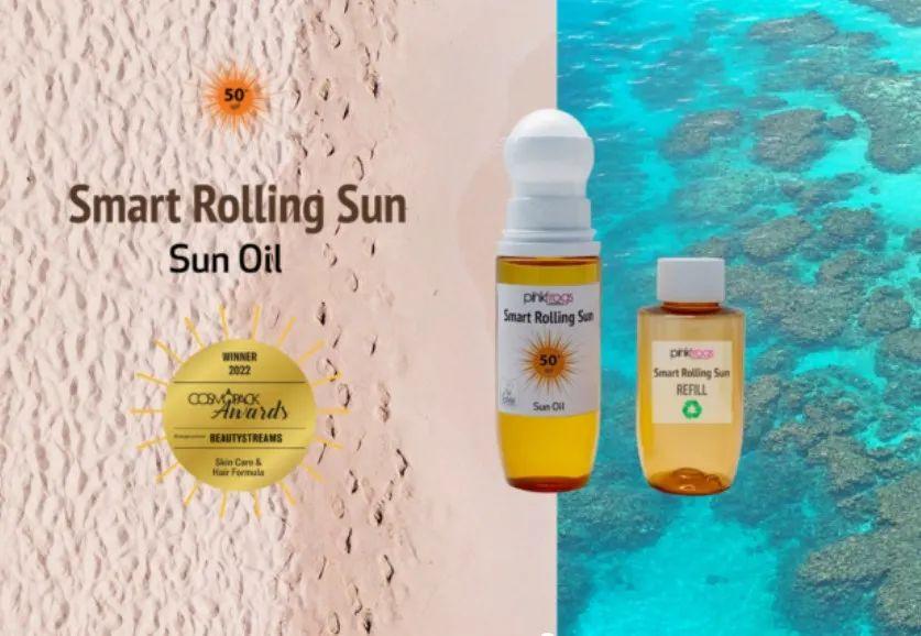 比如,意大利化妝品合同制造商Pink-Frogs Cosmetics推出的Smart Rolling Sun Oil SPF 50+ 防曬油,以甲氧基肉桂酸乙基己酯、奧克立林、苯并菲酮、水楊酸乙基己酯、肉桂酸鹽等為主要防曬劑,主打?qū)ι汉饔押?,且不含?nèi)分泌干擾物防曬劑和潛在過敏原。此外,該產(chǎn)品通過可再填充和可重復(fù)使用的包裝,減少對環(huán)境的影響。
