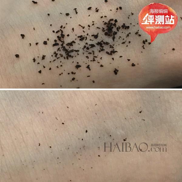 評(píng)測(cè)結(jié)果:從對(duì)比圖可以看出,抖動(dòng)手背后,肌膚上的茶葉渣殘留量極少,證明隔離液與肌膚的貼合度很高,肌膚從直觀上表現(xiàn)出來(lái)的感覺(jué)也是很清爽不粘膩的。而且在涂抹的過(guò)程中,也能從觸感上感受到產(chǎn)品的清爽、無(wú)油膩感。以上均能說(shuō)明此款隔離液的清爽性,使用時(shí)以及使用后都無(wú)粘膩不適感。