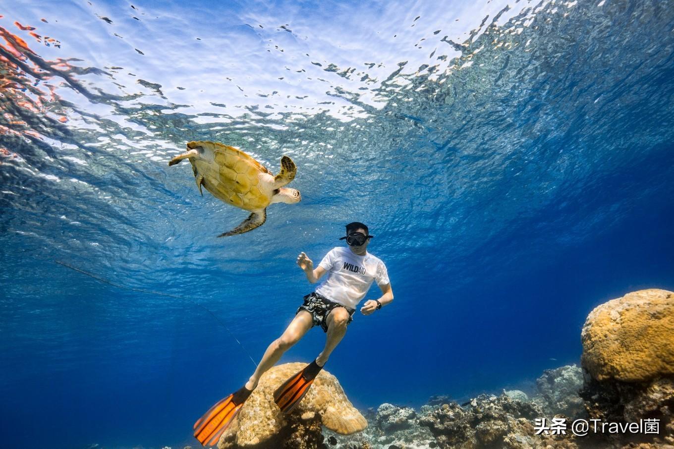 APO島本身是一個(gè)巨大的海洋保護(hù)區(qū),這里生態(tài)環(huán)境良好,物種豐富,周圍海域常年生活著五六個(gè)品種近幾十只海龜,這里為海龜?shù)膶iT設(shè)立的保護(hù)區(qū)離海岸并不是很遠(yuǎn),所以浮潛出去不用很遠(yuǎn)就可以看到它們慢悠悠游動(dòng)的身影。同時(shí)這里的水質(zhì)極其清澈,在水底下拍照也很合適