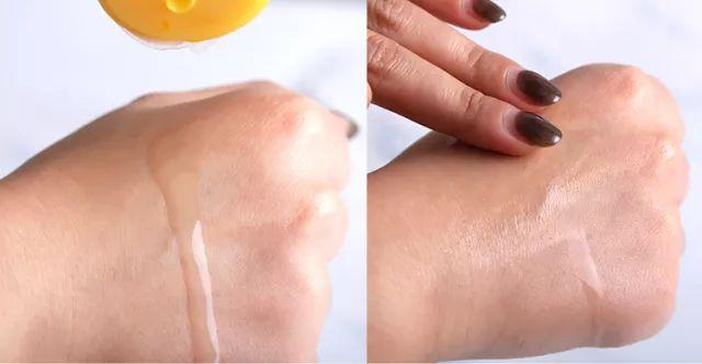 味道是香香甜甜的橙子味,聞起來舒服,質(zhì)地是清透的水狀,涂抹起來很清爽,完全不用擔心會粘稠。