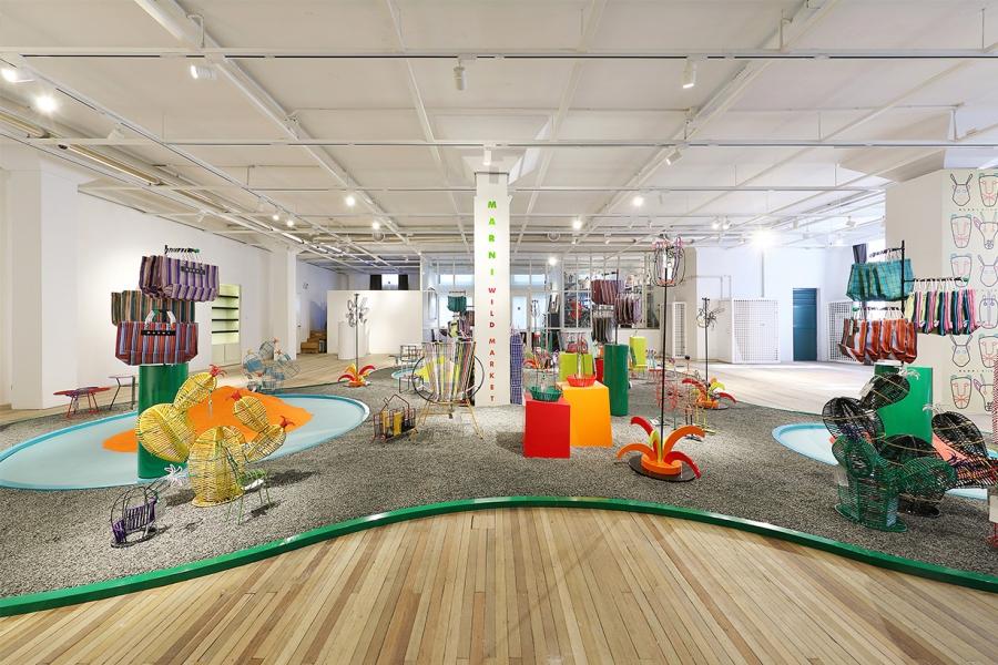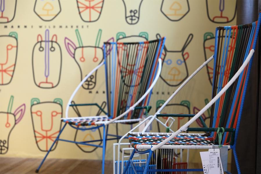 11月底,Marni Wild Market登陸上海,帶來(lái)一系列限量版的設(shè)計(jì)和生活方式產(chǎn)品,包括編織菜籃子、仙人掌造型的小擺件、動(dòng)物耳朵裝飾的藤編椅子、幾何線條的小桌子,以及各種蠢萌的小型置物架。Marni的天貓旗艦店上也有售賣相應(yīng)產(chǎn)品,每件1000元左右。