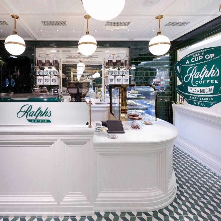今年上半年,為了慶祝品牌成立50周年,Ralph Lauren在香港海港城開(kāi)了一家咖啡店,綠金配色獨(dú)具美式復(fù)古的風(fēng)格。