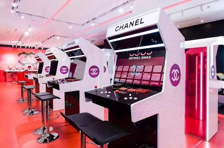 繼快閃咖啡店后,Chanel又開(kāi)了一家快閃游戲廳,依然是推廣它家的美妝產(chǎn)品。游戲廳里擺放了幾臺(tái)游戲機(jī)、抓娃娃機(jī),大家可以一邊玩游戲,一邊免費(fèi)拿Chanel口紅,玩試色。