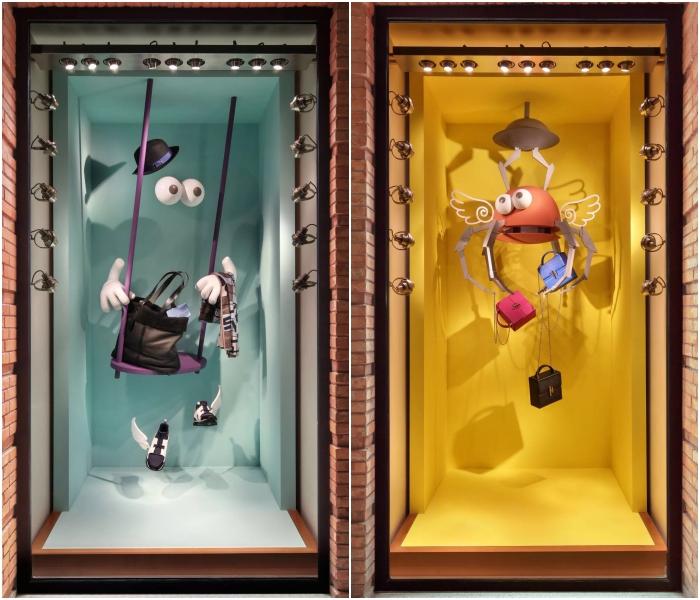 Hermes的櫥窗設(shè)計(jì)一直以創(chuàng)意出名。今年冬天,Hermes邀請(qǐng)中國(guó)藝術(shù)家陸平原專門為上?!皭?ài)馬仕之家”設(shè)計(jì)冬季櫥窗。整片櫥窗充滿了童趣元素,Hermes的包袋、絲巾、衣服和杯碟變成了兩位“壞孩子”的玩具。