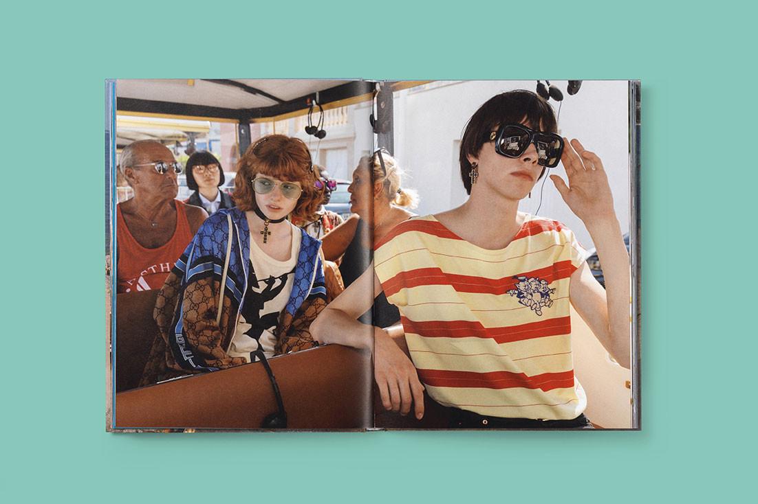事實(shí)上,Martin Parr是個(gè)紀(jì)實(shí)攝影師,特別擅長(zhǎng)用諷刺的角度觀察社會(huì)。Parr的畫(huà)面記錄下這群穿著Gucci的模特,他們穿行于遮陽(yáng)傘、棕櫚樹(shù)及海濱露臺(tái),離不開(kāi)冰淇淋、充氣沙灘玩具和防曬霜。這本攝影書(shū)一共只有1000本,Gucci Wooster Bookstore也有出售。