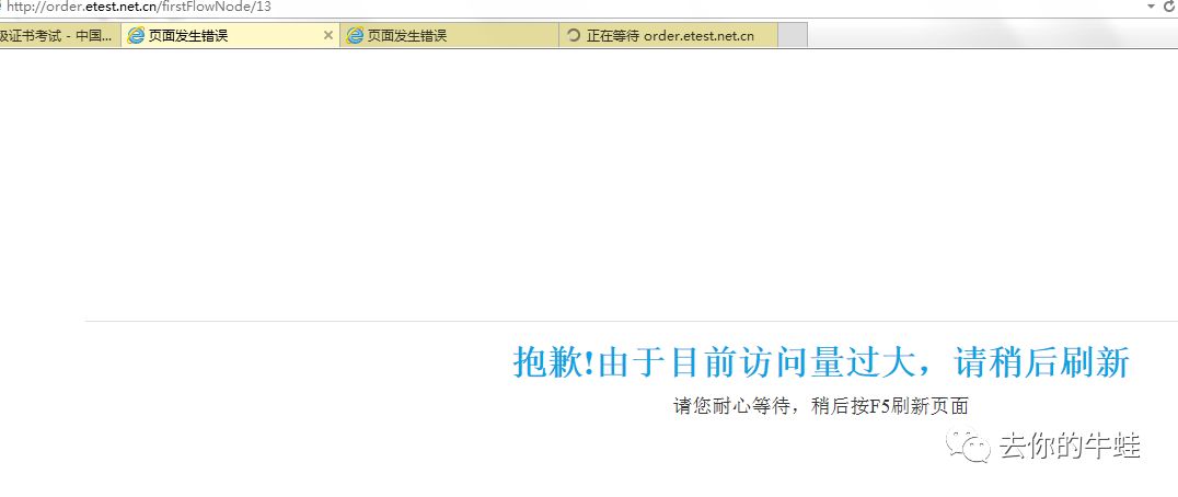 抱歉和404輪流出現(xiàn),顯然劍橋官網(wǎng)低估了老母親對考證的熱情??!之后的近一個小時,網(wǎng)站基本處于癱瘓狀態(tài),一首涼涼單曲回放。