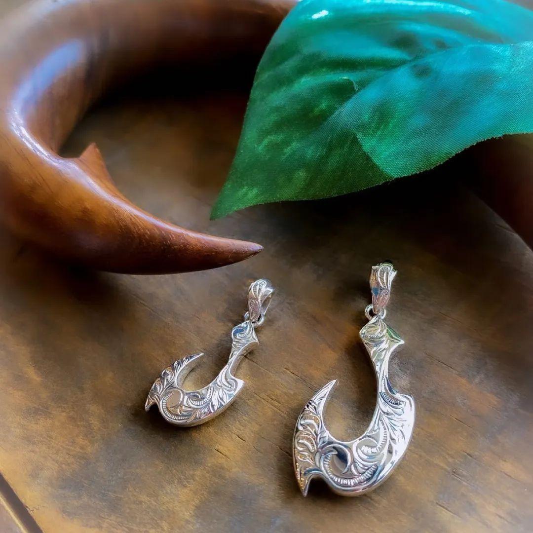 與強(qiáng)調(diào)民族文化的印第安銀飾同樣,夏威夷珠寶亦將其獨特的地理環(huán)境與民俗所派生出的象征物融入在了飾品之中。就例如印銀中常用“鷹”、“羽毛”、“箭矢”等元素,相應(yīng)的夏威夷珠寶則會將“波浪”、“雞蛋花”、“鯨魚”、“魚鉤”等事物以花紋或單獨的形態(tài)在珠寶中呈現(xiàn)。