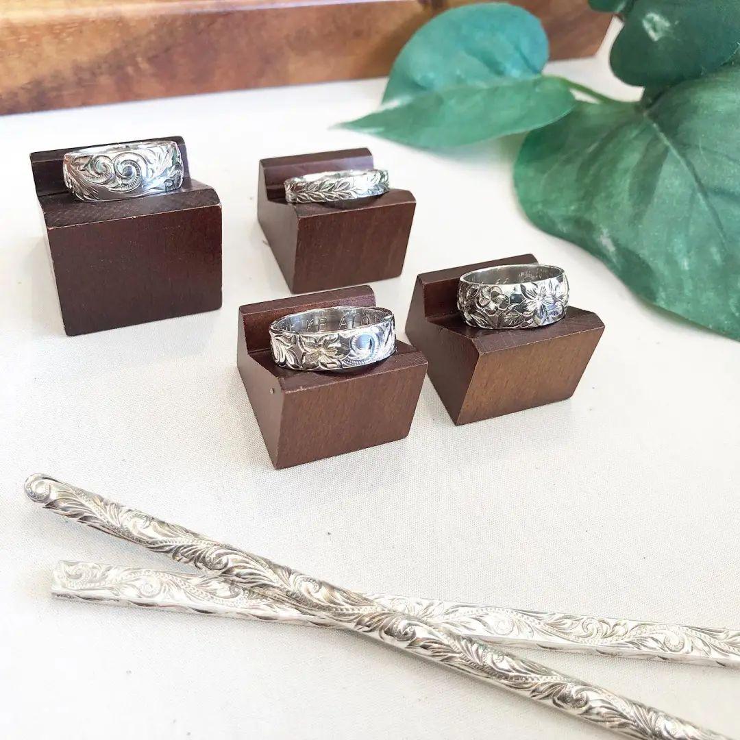 此外,與強(qiáng)調(diào)雕刻線條之深與做舊感的印銀不同的是,傳統(tǒng)夏威夷珠寶大多都會以更加纖細(xì)的線條呈現(xiàn)復(fù)雜的花紋與樣式,突出打磨后的光澤感。因此對于工匠的雕刻技術(shù)要求更是極高。