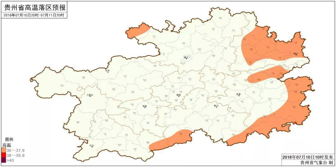 11日夜間到12日白天,省的西部、北部邊緣及東南部地區(qū)多云有分散陣雨或雷雨,其余地區(qū)多云到晴,省的東部、南部邊緣及赤水河谷有35℃以上高溫;