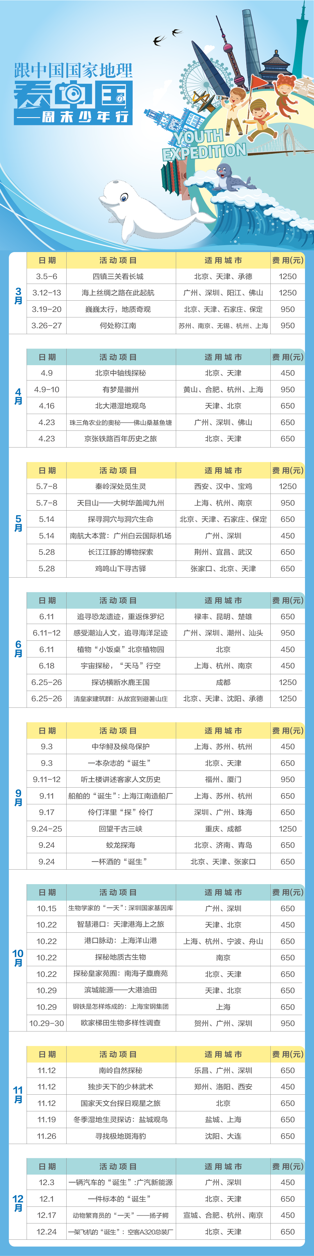 “跟中國地理看中國——周末少年行”是中國地理青少年周末活動平臺,由中國地理科學(xué)考察部策劃并運(yùn)營。我們帶領(lǐng)全國的青少年,在各學(xué)科導(dǎo)師的引領(lǐng)下,以奇趣自然、歷史人文、大國工程等六大系列活動為基本構(gòu)架,讓中國少年更、更具體、更地認(rèn)識中國、了解中國。
