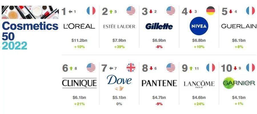 化妝品是指以涂抹、噴灑或其他類似方法,散布于人體表面任何部位(皮膚、毛發(fā)、唇齒等),以達到清潔,消除不良氣味、護膚、美容和修飾目的的日用化學工業(yè)產(chǎn)品。市場上品牌琳瑯滿目,下面就根據(jù)Brand Finance新發(fā)布的“2022年化妝品和個人護理品牌價值50強”,簡單作介紹一下。