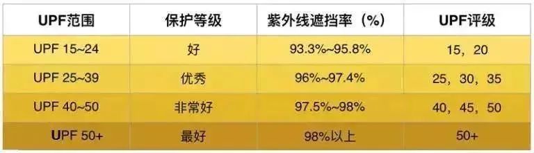 一般來(lái)說(shuō),防曬霜的防曬指數(shù)是用 SPF 來(lái)表示的,而防曬衣則是用 UPF(紡織品防紫外線的性能)的值來(lái)表示的。