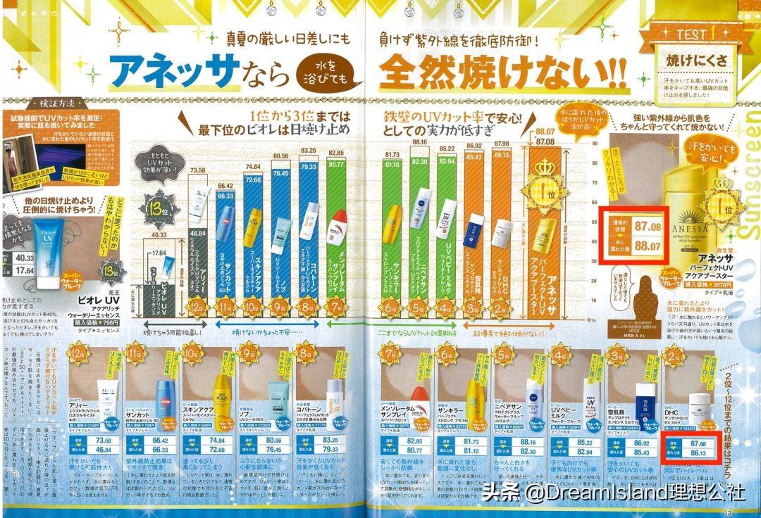 日本雜志的結論中:DHC防曬小白帽在防曬力上跟安耐曬小金瓶相當。
