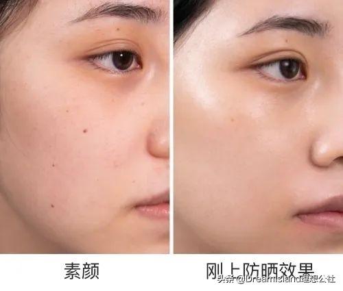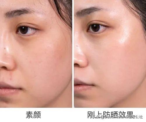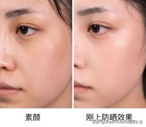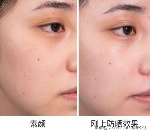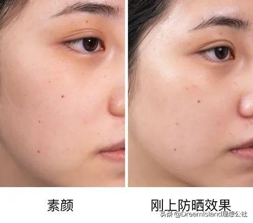 【上臉果】:素顏和剛上防曬,對比看一下,有均勻膚色提亮果。