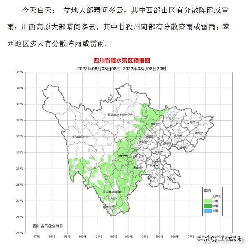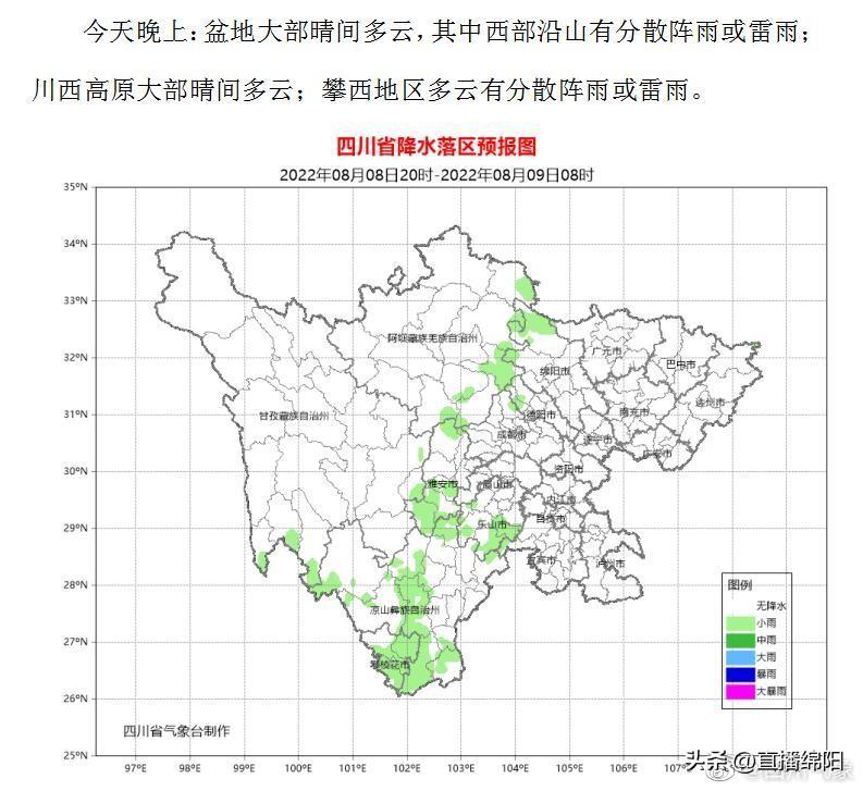 不過,好消息是夜間會涼快一點。今天白天到晚上:盆地大部晴間多云,其中西部山區(qū)有分散陣雨或雷雨;川西高原大部晴間多云,其中甘孜州南部有分散陣雨或雷雨;攀西地區(qū)多云有分散陣雨或雷雨。