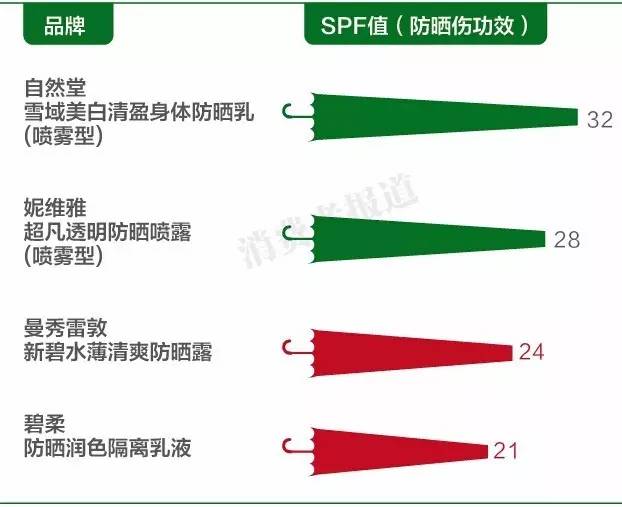 ConsumerReports2015年12月檢測(cè)了34款身體防曬霜和6款面部防曬霜的SPF值以及抗UVA紫外線(xiàn)的果。SPF值用于衡量產(chǎn)品抵御UVB紫外線(xiàn)的果,該紫外線(xiàn)能夠?qū)е缕つw灼傷和皮膚癌,UVA紫外線(xiàn)能使皮膚變棕色并加速皮膚衰老,也會(huì)增加致皮膚癌風(fēng)險(xiǎn)。