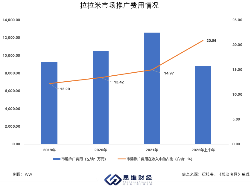 2020年,抖音還不是拉拉米前五大推廣服務(wù)供應(yīng)商之一,2021年抖音就成為了拉拉米第四大推廣服務(wù)供應(yīng)商,2022年上半年更是僅排在淘寶之后,成為公司的第二大推廣服務(wù)供應(yīng)商。不過,抖音等平臺推廣采購額的增加并未影響拉拉米在其他平臺的廣告投放,如拉拉米在京東平臺的推廣投入就由2020年的550.27萬元增加到2021年的1206.35萬元,2022年上半年,拉拉米就在京東平臺投入了844.2萬元的推廣。