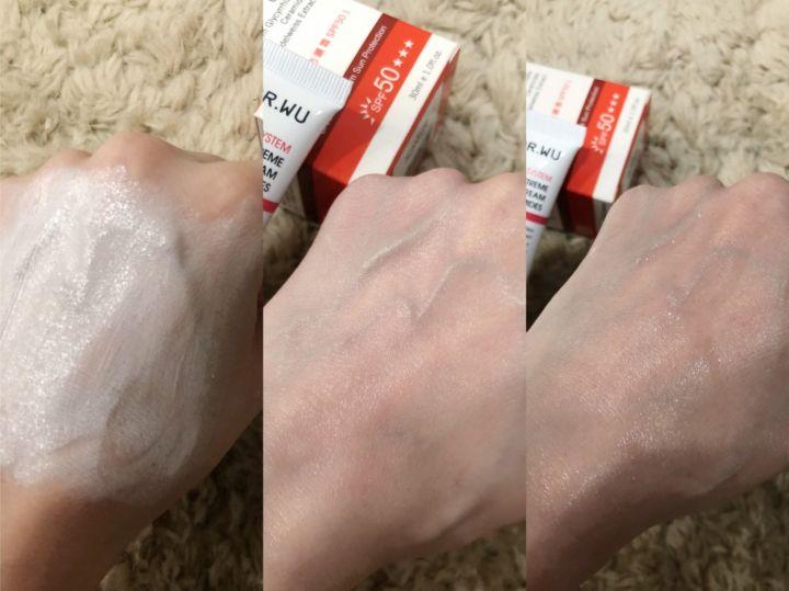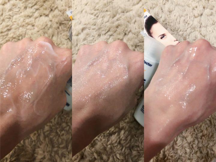 SPF 50 PA ++++, 偏厚的質地,乳霜狀,涂抹后有點偏白,需要一段時間吸收。無特殊香味。防水能力佳,適合一般膚質或容易出汗的人使用。