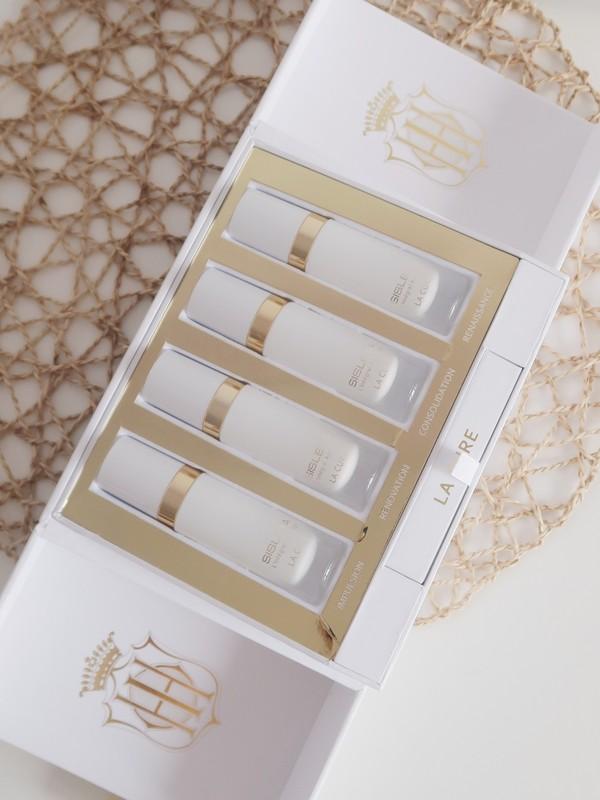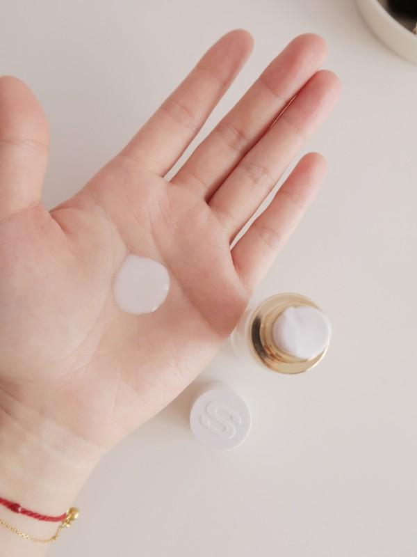 這一套精華組分為四瓶,每周一瓶,能很好地精華能量的高性。每天早晚各用一次,一定記得每次使用的量是8泵哦!不要被嚇到,其實這個量能剛好滿足全臉+脖子的覆蓋,而且我一個混油皮用這個量也完全不會覺得油膩厚重。上臉是極其水潤清透的,延展力也很好,輕輕做幾次提拉的動作就完全吸收啦。干皮可以再疊加一個面霜,油皮就可以直接睡覺了。我愛的就是每天早上起床的時刻,皮膚狀態(tài)一級棒,細(xì)膩、透亮、充盈!