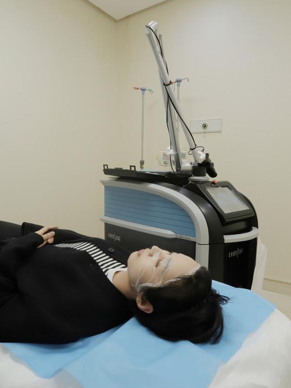 測膚后確認(rèn)調(diào)節(jié)方案,正式打激光前會先敷20分鐘麻藥(就像面膜一樣),【平掃】模式時,幾乎沒什么感覺,【蜂巢】模式能感覺能量變大,但痛感也完全在接受范圍內(nèi)。