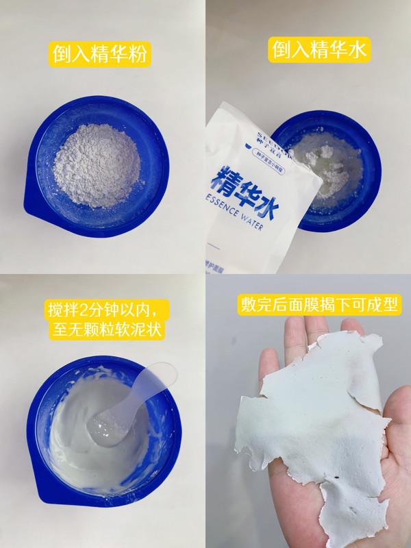 新鮮調(diào)制DIY的使用方式也很有趣,儀式感滿滿。自帶面膜碗和挖勺攪拌棒,先將精華水倒入碗中,再倒入精華粉,混合攪拌均勻,就可以自由敷臉啦,質(zhì)地軟糯,上臉很舒適。15分鐘左右,等待精華液浸潤到肌底,面膜可以成“皮”揭下來,解壓。泛紅起皮都有緩解,毛孔更加細(xì)膩,皮膚整體更有光澤感。