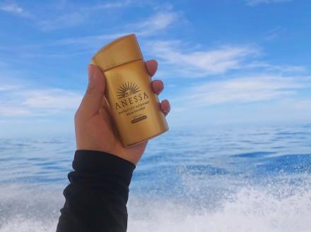 資生堂的藍(lán)胖子防曬霜,這款是敏感肌用的,小寶寶也可以使用的防曬,但是這一款上臉就比較泛白,有點刷墻感,成膜是比較快的但是后續(xù)會有些拔干,不過她的防水果很好,比較推薦油性敏感肌的姐妹,對于干性皮膚的姐妹還是不要用這一款。
