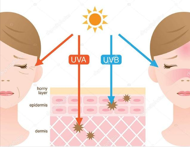UVB(波長較短)會(huì)損傷皮膚的表皮層,使皮膚曬傷、曬紅,