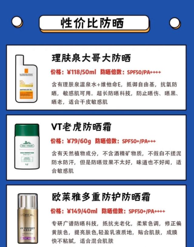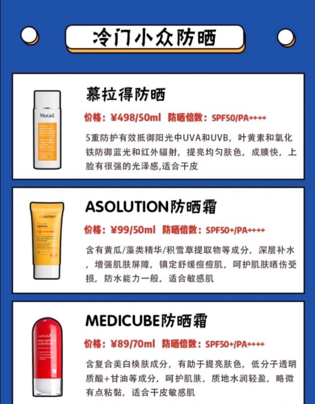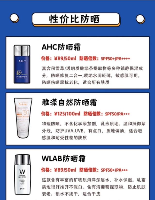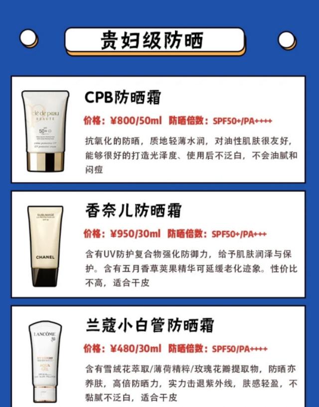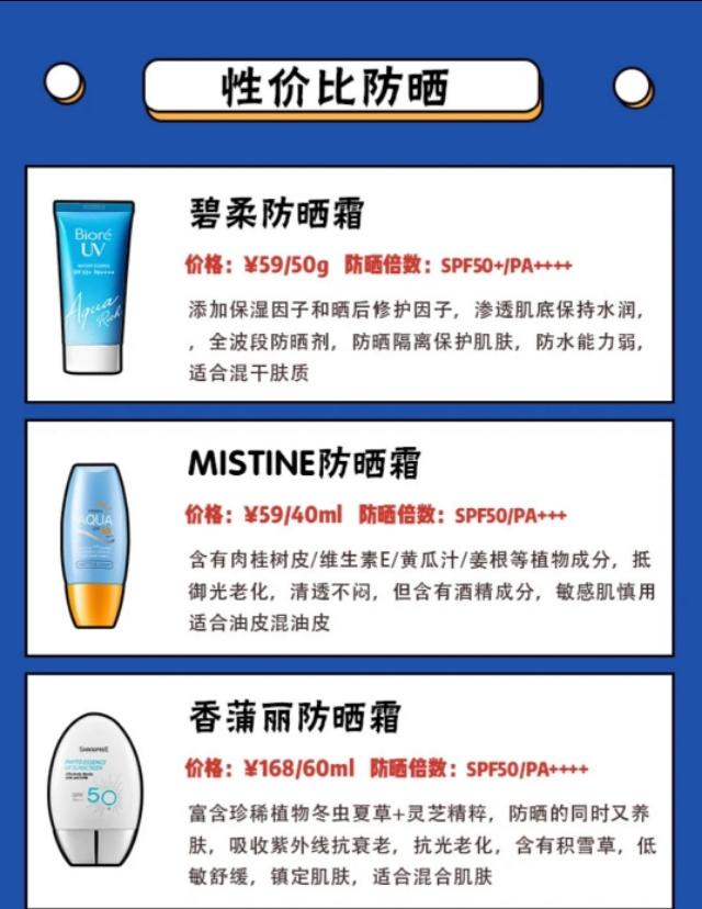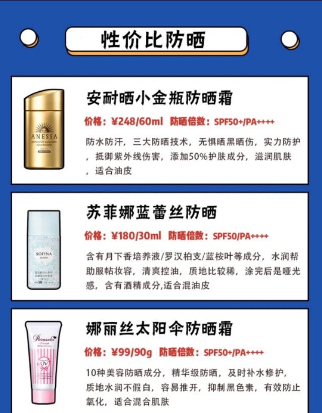 通過防曬霜的質(zhì)地、使用感、適用膚質(zhì)、價格、防曬系數(shù)逐一為大家推薦