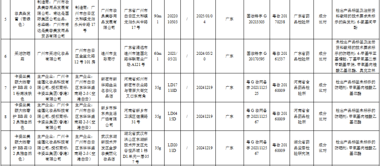 另外,標(biāo)示為卡姿蘭集團(tuán)(香港)有限公司授權(quán)商標(biāo),廣州卡迪蓮化妝品科技有限公司生產(chǎn)的卡姿蘭美顏大咖奢護(hù)BB霜 01粉嫩淺膚色(標(biāo)示批號(hào):LD17110D)、卡姿蘭美顏大咖奢護(hù)BB霜 02典雅自然色(標(biāo)示批號(hào):LD0415D)、卡姿蘭美顏大咖奢護(hù)BB霜(02典雅自然色)(標(biāo)示批號(hào):LD2011D)3批次化妝品均被檢出成分比對(duì)不合格,檢驗(yàn)結(jié)果均為檢出產(chǎn)品標(biāo)簽未標(biāo)示的防曬劑:甲氧基肉桂酸乙基己酯。