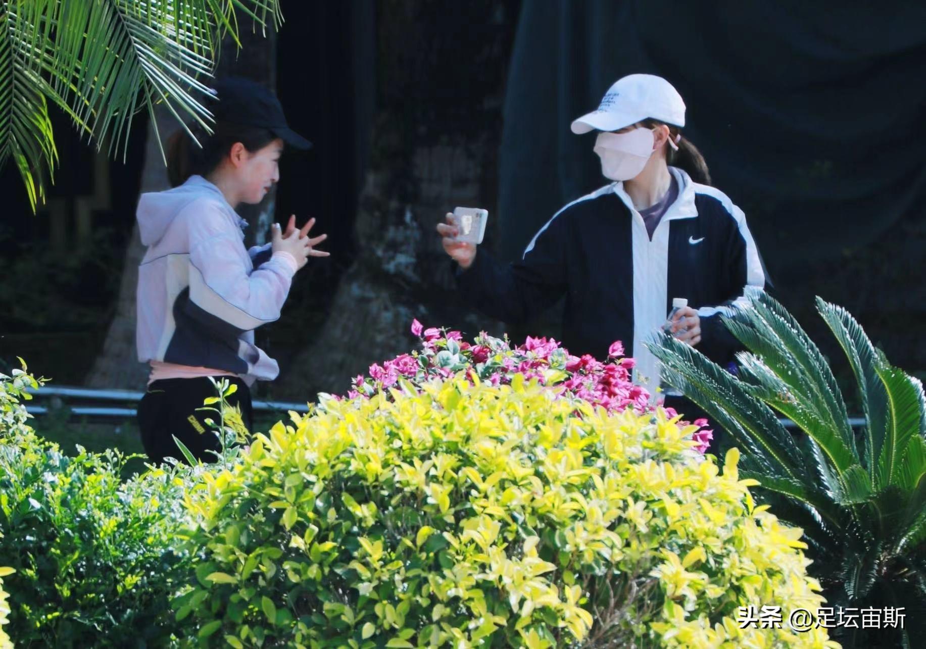 陵水當?shù)氐臏囟阮H高,國乒將士都紛紛換上了短袖、短褲。在戶外時,女乒如今的“大姐”劉詩雯十分注意防曬,不僅穿著長袖長褲,還在跑步時將手縮進袖子里。