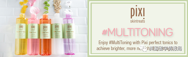 Pixi是誕生于英國(guó)倫敦的彩妝護(hù)膚品牌,產(chǎn)品的包裝和價(jià)格都很小清新,適合學(xué)生黨。局長(zhǎng)覺(jué)得她家大的優(yōu)點(diǎn)就是使用方便,產(chǎn)品種類多。比如說(shuō)爽膚水就有五種,每種功不同:招牌產(chǎn)品果酸發(fā)光水Glow Tonic(上圖C位)可以溫和去角質(zhì)、提亮膚色;玫瑰爽膚水Rose Tonic(上圖左二)主打舒緩肌膚,溫和補(bǔ)水;牛奶保濕水Milky Tonic(上圖右二)含有透明質(zhì)酸、保濕不粘膩;VC亮膚水Vitamin-C Tonic(上圖左一)含有VC和阿魏酸,可以淡斑美白;視黃酮水Retinol Tonic(上圖右一)含有視黃酮和勝肽等抗老成分,淡化細(xì)紋、緊致潤(rùn)膚。而且這5款爽膚水都有噴霧包裝,噴霧細(xì)膩,使用更方便。